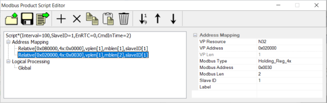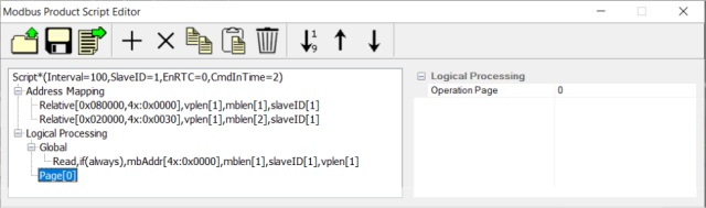 Script read operation initials by Script itself, and call the MODBUS slave to provide the data. When data received, it will copy it to the predefined mapped address based on Address Mapping.
