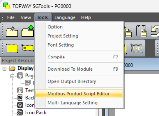 1. Start the Script Editor In TOPWAY SGTools; Menu à Tools à MODBUS Product Script Editor