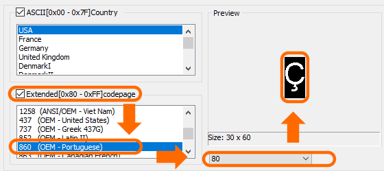 - Code page can also be config by sys_reg (System Registers[0xFFFF30] := 4 for 860 OEM Portuguese)