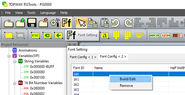 - Font Setting --> Font Config <2> --> built font