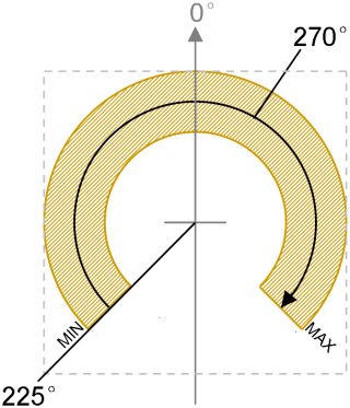 Style Mode options are Hand / Donut Mix Color / Donut Discolor / Icon Rotation / Icon Open / Pseudo Icon Rotation / Pseudo Icon Open Direction options Clockwise / CounterClockwise Start Angle is the angular location of the min value Sweep Angle is the effective angular area that relatively begin form the Start Angle for sensing